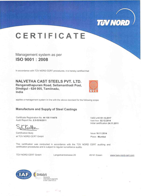 A systematic process followed to achieve more than customer expectations with stringent checkout of Manufacturing activities right from the receipt of raw material to dispatch of castings . The System covers Equipment, Personnel and Inspection methods and it complies with National & International Standard requirements. The documents are subjected to periodic audits for continual improvement.