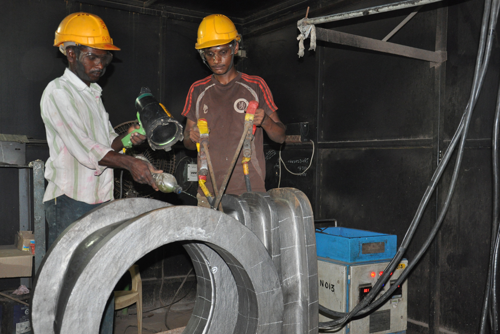 Magnetic Particle Testing facility is available with prod method in both Fluorescent and Non Fluorescent medium. Testing is carried out in both dry and wet method.